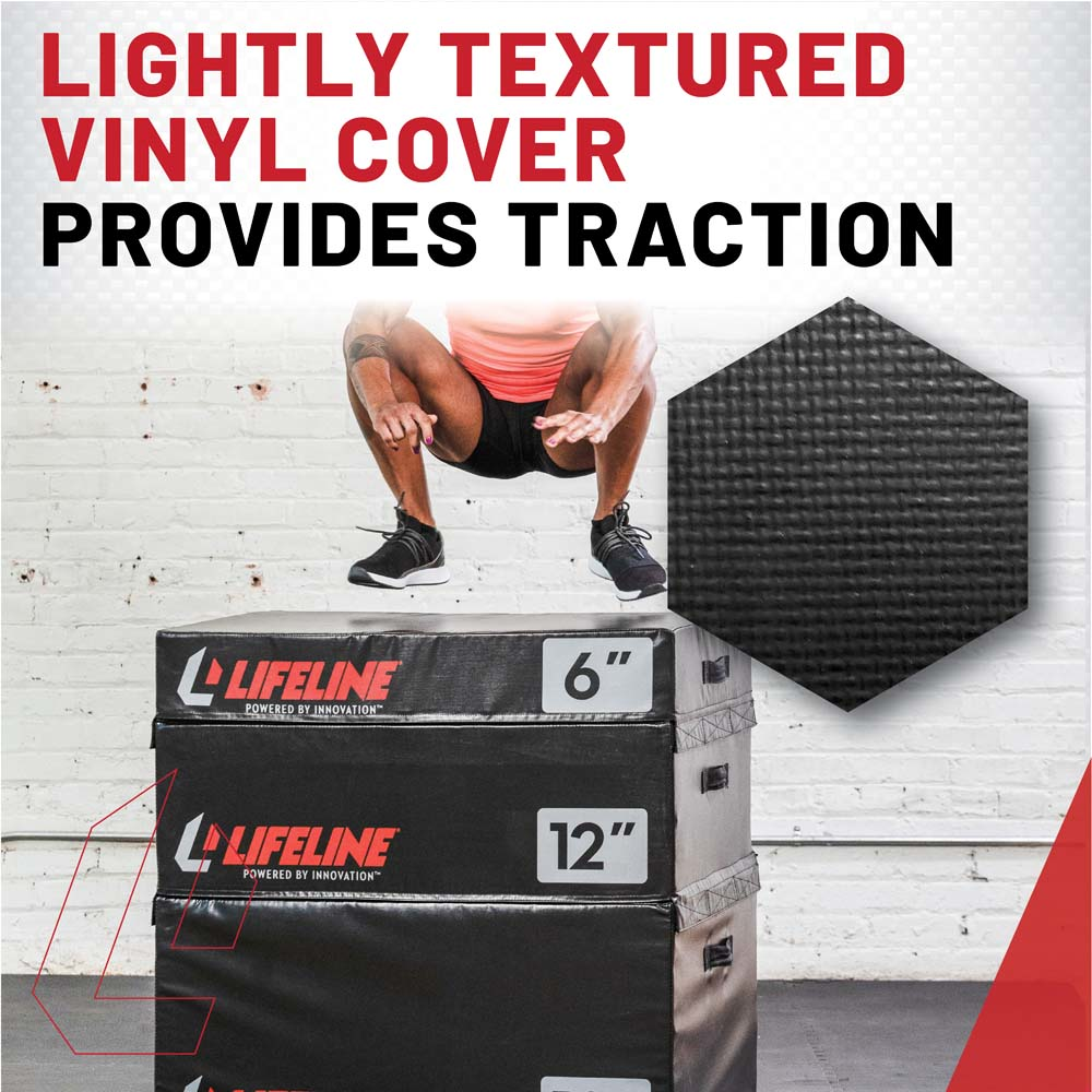 Level up with Lifeline Fitness Foam Plyo Boxes! These plyometric boxes bring durability, safety, and flexibility, perfect for home gym cardio or agility training. Dense foam softens landings, heavy-duty vinyl covers offer sure footing and simple upkeep. Ranging from 3” to 24” with stackable sets, they adapt to any workout via hook-and-loop flaps. Handles make moving easy, the 35.5” x 30” surface supports bold jumps. Top-tier jump box gear for enthusiasts or pros!