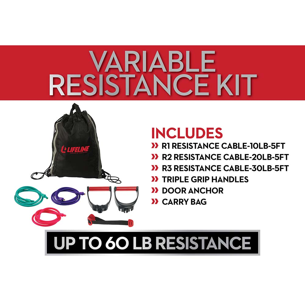 Vary everything from resistance levels and angles, plane of motion and muscles that are targeted with the Variable Resistance Training Kit. It comes in a convenient carry bag and features the ergonomically designed triple grip handles, which can be used with three resistance cables to create 60lbs to 120-lbs. of total resistance, depending on the kit, as well as a heavy-duty door attachment that allows you to get in a comprehensive full body strength training workout at home or on-the-go.