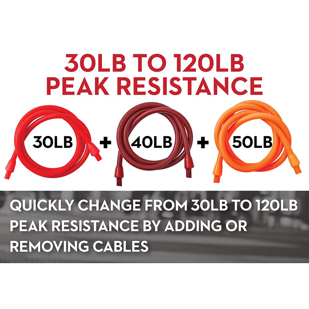 - Builds full body strength through constant tension. Available in 60lb or 120lb max variations